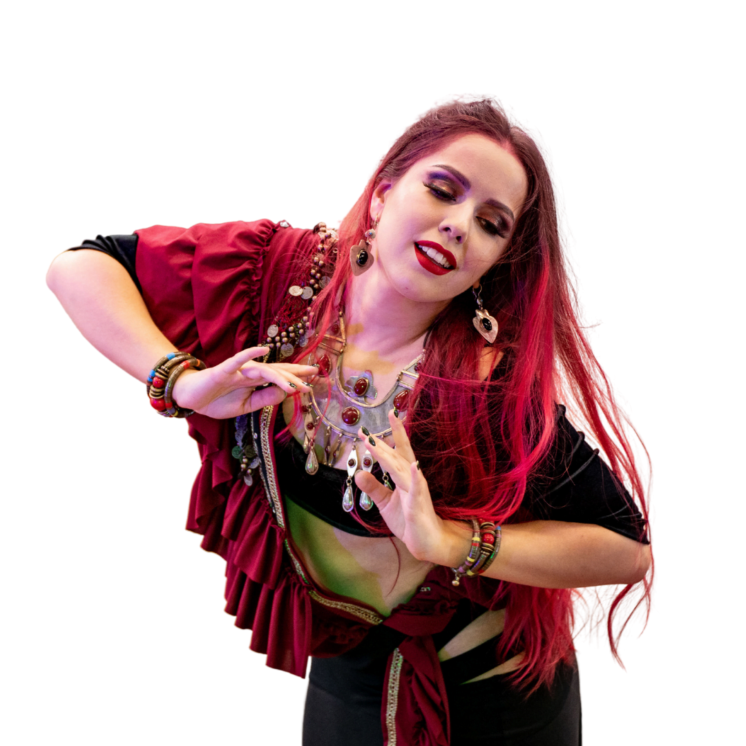 Tribal Fusion Bellydance is a modern, eclectic style that emerged from ATS® in the late 1990s and early 2000s. It blends movement principles and elements from various styles, integrating traditional Bellydance with urban or folkloric influences. Tribal Fusion offers a platform to celebrate personal expression through movement and creates a visually striking blend of controlled movement and relaxed grace.